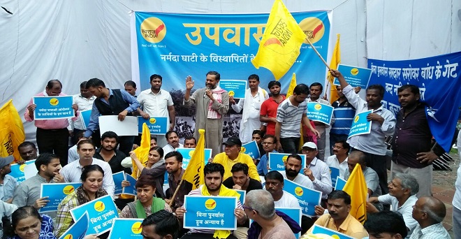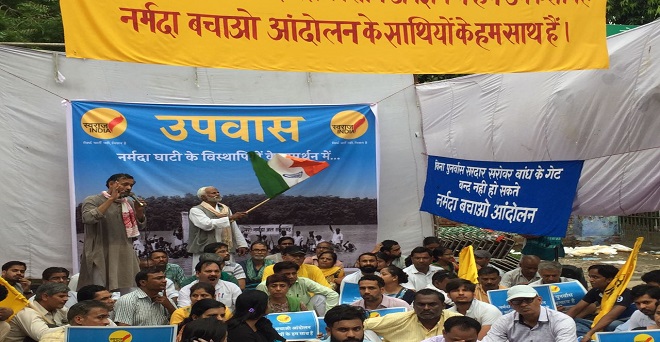 नर्मदा घाटी के विस्थापितों के लिए नर्मदा बचाओ आंदोलन को स्वराज इंडिया ने समर्थन दिया है। आज सोमवार को दिल्ली के जंतर मंतर पर पार्टी अध्यक्ष योगेंद्र यादव के साथ स्वराज इंडिया के वॉलंटियर्स ने एक-दिवसीय सांकेतिक उपवास रखा। मेधा पाटकर के नेतृत्व में कई आंदोलनकारी नर्मदा घाटी में अनिश्चितकालीन अनशन पर बैठे हैं। जंतर मंतर पर हुआ उपवास उन्हीं के समर्थन में रखा गया। दिन भर चले कार्यक्रम का समापन शाम को कैंडल मार्च से होना था, लेकिन भारी बारिश के कारण कैंडल मार्च नहीं किया गया।