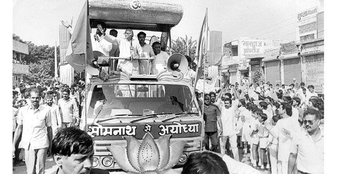1990 – लाल कृष्ण आडवाणी ने 25 सितंबर को गुजरात के सोमनाथ से राम रथ यात्रा शुरू की। 23 अक्टूबर को लालू प्रसाद यादव ने बिहार के समस्तीपुर में रथ यात्रा पर रोक लगा दी और आडवाणी को गिरफ्तार करवा दिया।