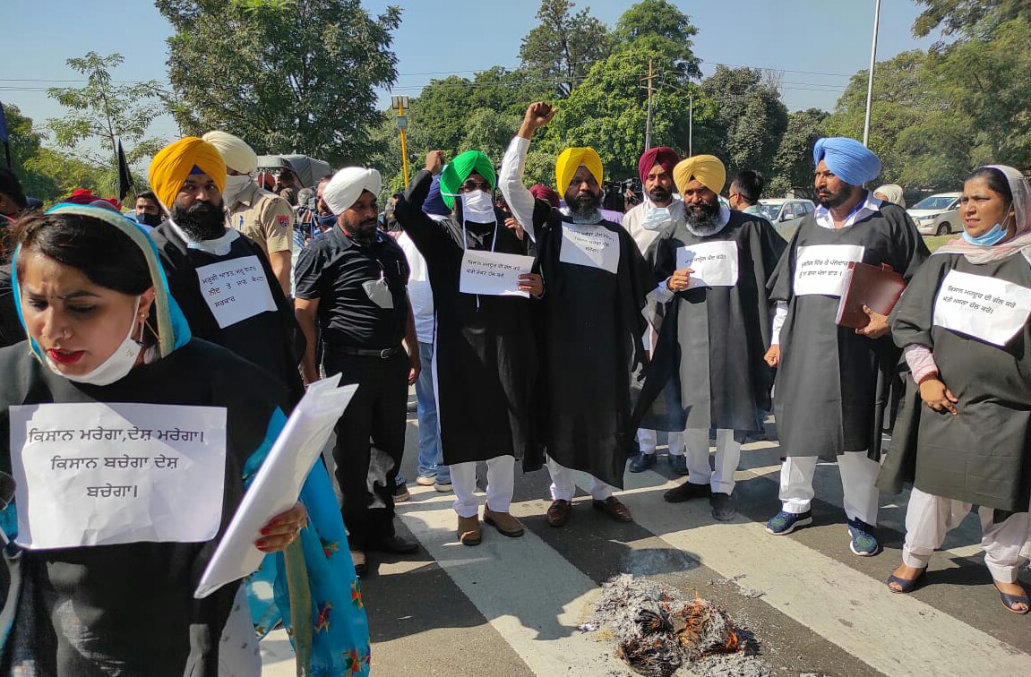 अकाली दल ने कृषि बिल की कापियों को जलाया: