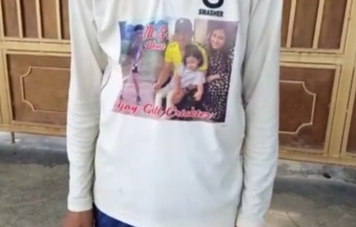धोनी चेन्नई गए हुए हैं। आईपीएल के दूसरे चरण के अभ्यास के लिए। पांव में स्लीपर, हाथ में तिरंगा, पीठ पर बैकपैक, कंधे पर किट में बैट, गोलाकार छिले हुए सिर पर एक ओर धोनी तो दूसरी ओर माही, इसी अंदाज में पहुंचा था। जो टीशर्ट पहने था उस पर भी धोनी, पत्नी साक्षी और बेटी की तस्वीर थी।