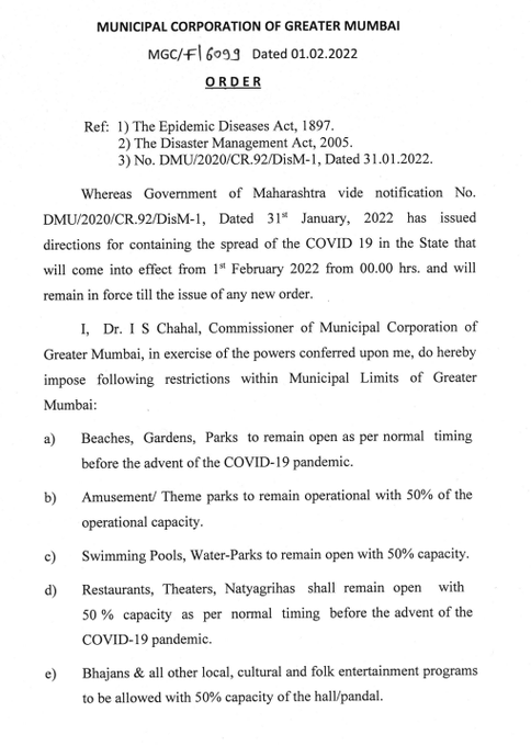 मुंबई में कोरोना के मामलों में कमी आने के बाद बृहन्मुंबई नगर निगम (बीएमसी) ने आज यानी मंगलवार को कोविड प्रतिबंध हटा दिए हैं। इसके बाद लोगों को सुविधा प्रदान करने के लिए शहर में पार्कों, उद्यानों, स्पा और यहां तक कि समुद्र तटों पर वापस जाने की अनुमति मिल गई है।