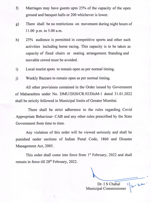 -भजन और अन्य सभी स्थानीय, सांस्कृतिक और लोक मनोरंजन कार्यक्रमों को 50% क्षमता के साथ करने की अनुमति मिल गई है।