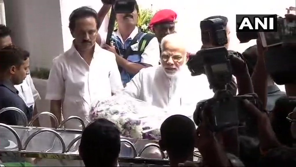 पीएम मोदी ने अस दौरान वहां करुणानिधि के बेटे स्टालिन और बेटी कनिमोझी से मुलाकात की...