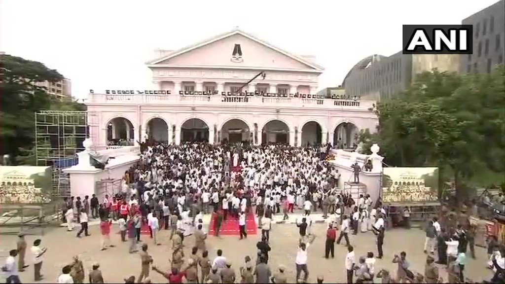 केरल के पूर्व सीएम ओमान चांडी, तमिलनाडु के मुख्यमंत्री पलानीस्वामी और उपमुख्यमंत्री पन्नीरसेल्वम, राज्यपाल बनवारी लाल पुरोहित सहित कई बड़े नेताओं ने उन्हें यहां श्रद्धाजंलि दी है। कांग्रेस अध्यक्ष राहुल गांधी, सपा अध्यक्ष अखिलेश यादव और राजद नेता तेजस्वी यादव भी करुणानिधि के अंतिम दर्शन कर उनको श्रद्धाजंलि अर्पित की।