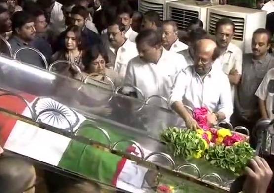 सुपरस्टार रजनीकांत ने भी चेन्नई पहुंचकर दक्षिण की राजनीति के पितामह करुणानिधि के अंतिम दर्शन कर उन्हें श्रद्धाजंलि अर्पित की...
