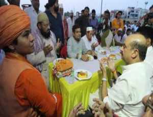 सरयू कुंज मंदिर में हुआ था इफ्तार का आयोजन
