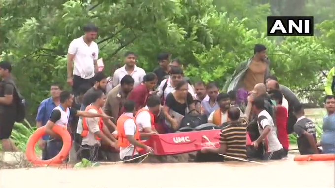 #WATCH Maharashtra: Aerials shots of Mahalaxmi Express rescue operation. More than 500 passengers have been rescued so far. pic.twitter.com/nLlsfebPAr