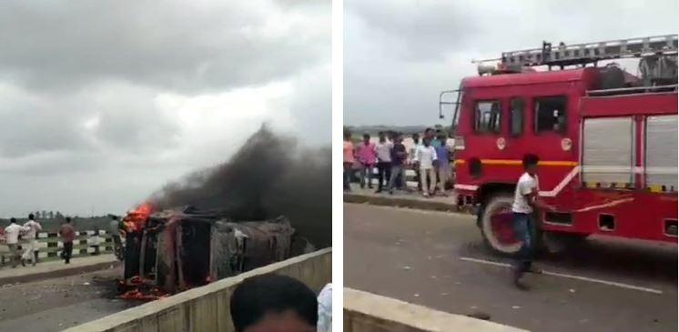 #WATCH: Maratha Kranti Morcha workers set ablaze a truck in Aurangabad's Gangapur as a mark of their protest demanding reservation for Maratha community in government jobs & education. #Maharashtra pic.twitter.com/OIdBJlSLpo