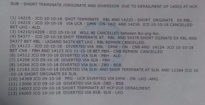 निरस्त होने वाली ट्रेनों की सूची