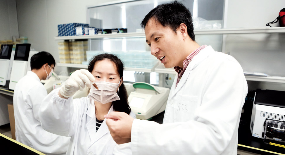 जीन-संपादन का काम तीन साल पहले शुरू हुआ था और इसका आंशिक खर्च स्वयं हे ने उठाया था। उन्होंने अपने बहुत कम सहयोगियों से अपनी योजनाओं के बारे में विचार-विमर्श किया था। हे शेनचेन स्थित दक्षिण चीन विज्ञान और टेक्नोलॉजी विश्वविद्यालय में एसोसिएट प्रोफेसर हैं। हांगकांग सम्मेलन में भाग लेने के बाद हे का कुछ पता नहीं चल रहा है। अफवाह है कि उन्हें गिरफ्तार कर लिया गया है अथवा शेनचेन में घर में नजरबंद कर दिया गया है। चीन के स्वास्थ्य अधिकारियों का कहना है कि उन्हें हे के कार्यों के बारे में कोई जानकारी नहीं है। चीन के विज्ञान और टेक्नोलॉजी मंत्रालय ने इस मामले की जांच के आदेश दिए हैं और हे को रिसर्च रोकने को कहा है।