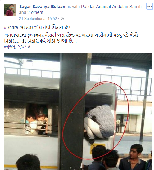 कुछ लोगों का मानना है कि एक पाटीदार लड़के सागर सावलिया ने फेसबुक पर एक फोटो डाली और इसके बाद से यह हैशटैग शुरू हुआ। इस पोस्ट में एक सरकारी बस और टूटे हुए टायर दिख रहे हैं। इसमें गुजराती में कैप्शन लिखा है, ‘सरकारी बसें हमारी हैं लेकिन इनमें चढ़ने के बाद आपकी सुरक्षा की जिम्मेदारी आपकी है। जहां है वहीं रहिए विकास पागल हो गया है।’ 20 साल के सावलिया इंजीनियरिंग छात्र हैं और वे बेफामन्यूज नाम से वेबसाइट चलाते हैं। वे पाटीदार अनामत आंदोलन समिति के सक्रिय सदस्य हैं और हार्दिक पटेल के करीबी हैं।