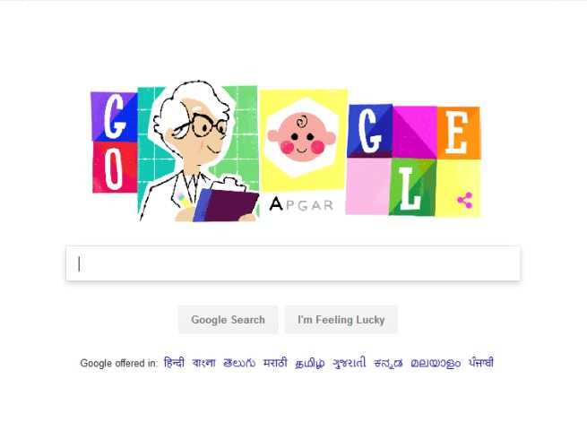 सर्च इंजन गूगल ने गुरुवार को अपने होमपेज पर एक खास डूडल बनाया है। गूगल ने ये डूडल अमेरिका की एनेस्थिसियॉलॉजिस्ट डॉक्टर वर्जीनिया ऐपगार के 109वें जन्मदिन के मौके पर बनाया है। वर्जीनिया ऐपगार को 'ऐपगार स्कोर' (Apgar Score) बनाने के लिए जाना जाता है। 'ऐपगार स्कोर' के जरिए नवजात शिशु के स्वास्थ्य से जुड़ी सभी जानकारियों का पता लगाया जाता है।