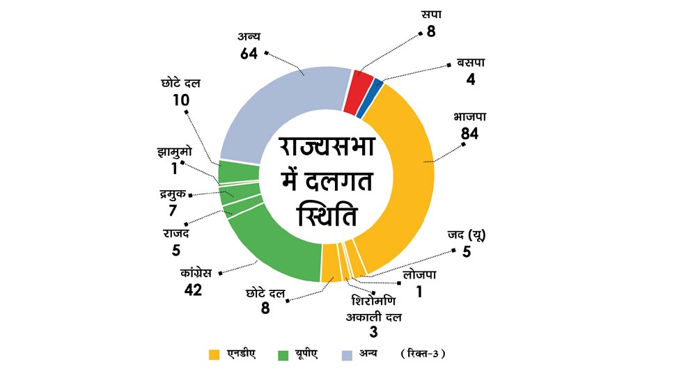 हालांकि 2014 लोकसभा चुनावों में जीत के बाद हरियाणा, महाराष्ट्र, उत्तर प्रदेश समेत कई राज्यों में लगतार जीत से राज्यसभा में भाजपा और एनडीए दलों की संख्या कुछ बेहतर हुई। लेकिन 2018 में कर्नाटक, महाराष्ट्र, मध्य प्रदेश, राजस्थान, गुजरात, पंजाब जैसे राज्यों में विपक्ष का पलड़ा भारी हुआ, तो हालात बदलने लगे। फिर कर्नाटक और इस साल मध्य प्रदेश में खासकर कांग्रेस विधायकों के पाला बदल से स्थितियां बदलीं। हालांकि इस पाला बदल में सैकड़ों करोड़ रुपए के लेनदेन का भी आरोप विपक्ष ने लगाया। वैसे, कांग्रेस के विधायकों और नेताओं के पाला बदल के उदाहरण पूर्वोत्तर से लेकर तमाम राज्यों में 2014 के बाद बड़े पैमाने पर हुए। गोवा, मणिपुर, अरुणाचल प्रदेश के उदाहरण तो गजब के हैं, जहां चुनाव में सबसे बड़ी पार्टी बनकर उभरी कांग्रेस और सरकार बनी भाजपा या भाजपा गठबंधन की। फिलहाल, मणिपुर में एक बार फिर मामला फंसा है।