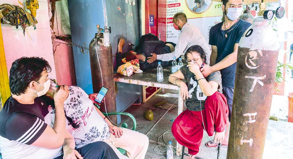 महामारी के दृश्यः अस्पताल में इलाज का इंतजार करते कोविड-19 के मरीज