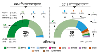 उसके बाद भी लोकसभा चुनावों में भाजपा को सहयोगी मिले। 2004 में उसने एआइएडीएमके के साथ चुनाव लड़ा। 2014 में पीएमके, डीएमडीके और एमडीएमके जैसी छोटी पार्टियों के साथ मिलकर यह चुनावी मैदान में उतरी। लेकिन विधानसभा चुनाव में उसे कोई सफलता नहीं मिली। पार्टी के एक वरिष्ठ नेता हकीकत को स्वीकार करते हुए कहते हैं, “हमारी मौजूदगी से विधानसभा चुनावों में हमारे सहयोगी दलों को अतिरिक्त वोट नहीं मिले। जब जयललिता थीं तब भाजपा समर्थक भी उनकी एआइएडीएमके को वोट देते थे ताकि डीएमके को हराया जा सके।”