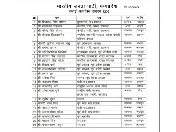 मध्य प्रदेश के भाजपा के प्रदेश अध्यक्ष वी डी शर्मा ने मंगलवार देर रात प्रदेश कार्यसमिति की घोषणा की। जिसमें पहली बार ऐसा हुआ कि सदस्यों के नाम के आगे उनकी जाति का उल्लेख किया गया था। हालांकि ज्यादातर नेताओं की जाति भी गलत बताई गई थी। जाति के आधार पर सूची जारी करने के तुरंत बाद ही विवाद पैदा हो गया, जिसको देखते हुए उस सूची को वापस लेकर नई सूची जारी की गई।
