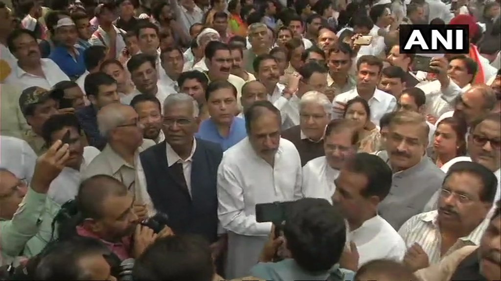 - सीबीआई मुख्यालय के बाहर पहुंचे कांग्रेस नेताओं आनंद शर्मा, प्रमोद तिवारी अादि के साथ्ा शरद यादव।