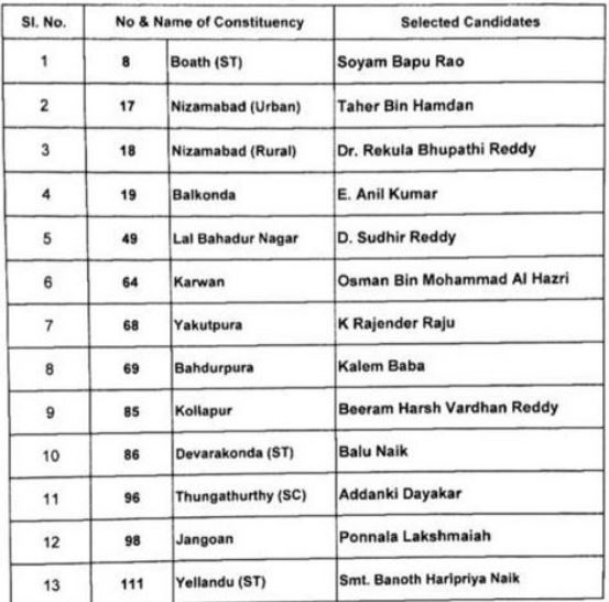 यहां देखें तेलंगाना विधानसभा चुनाव के उम्मीदवारों की दूसरी लिस्ट