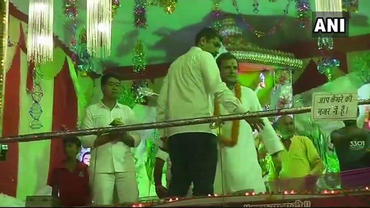 अपने दौरे के पहले दिन अमेठी के जगदीशपुर में लगे मां दुर्गा के पंडाल में पहुंचे राहुल गांधी ...