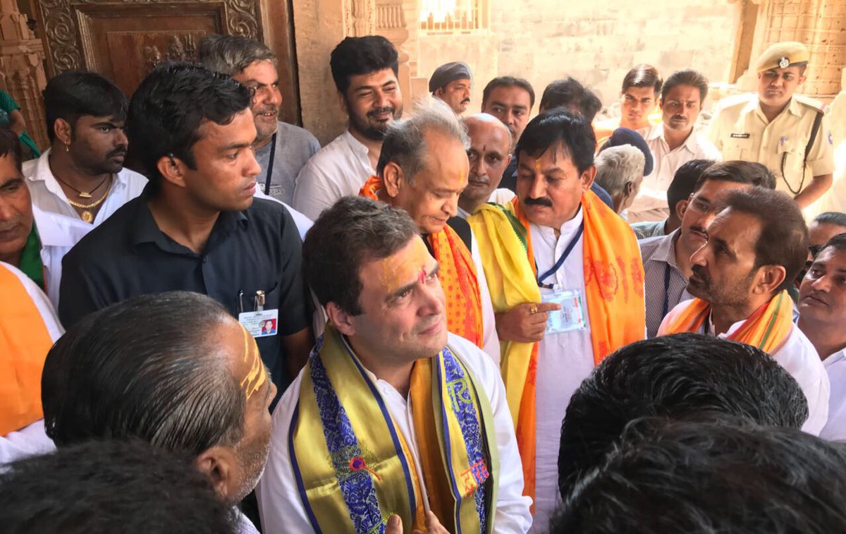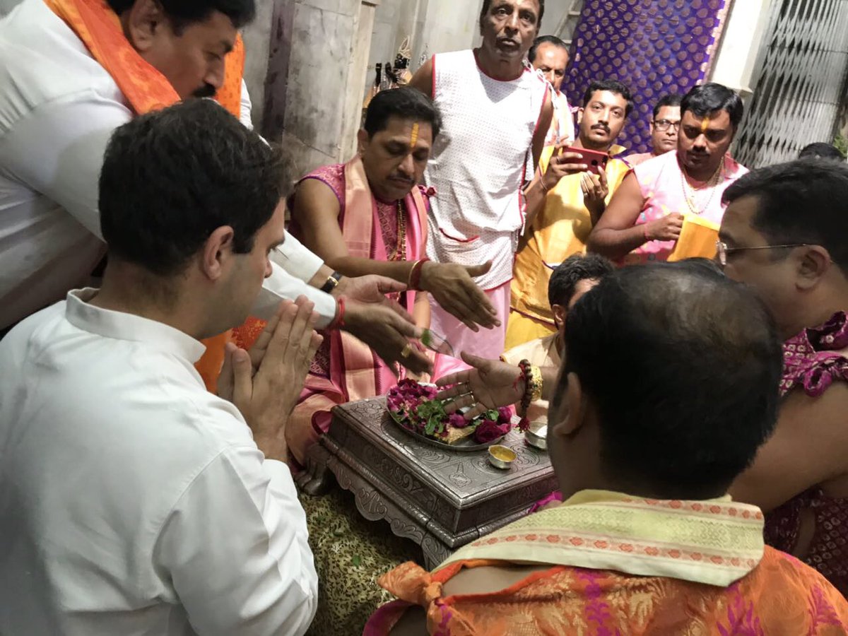 मंदिर में भगवान कृष्ण की पूजा-अर्चना करते और आशीर्वाद लेते कांग्रेस उपाध्यक्ष...