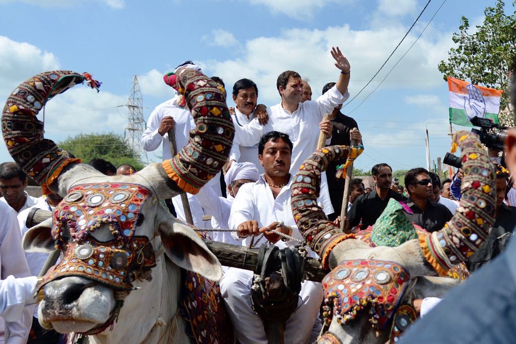 कांग्रेस उपाध्यक्ष राहुल गांधी ने हंजरापर गांव की एक चौपाल सभा में जाने के लिए किया इस बैलगाड़ी का इस्तेमाल...