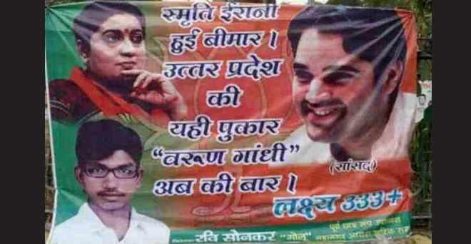इस बीच इलाहबाद में लगे पोस्टर भी सामने आए हैं, जिसमें स्मृति ईरानी हुई बीमार, उत्तर प्रदेश की यही पुकार, वरुण गांधी अब की बार की इबारत लिखी हुई है।