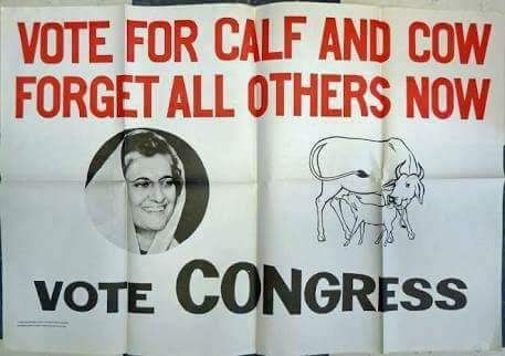 देश के पहले प्रधानमंत्री पंडित जवाहरलाल नेहरू के नेतृत्व वाली सरकार में कांग्रेस का चुनाव चिन्ह दो बैलों की जोड़ी थी जो आम लोगों व किसानों के बीच बेहतर तालमेल स्थापित करने में सफल रहा। इसके बाद जब कांग्रेस पार्टी का विभाजन 1969 में हुआ तो पार्टी के विभाजन के साथ-साथ चुनाव चिन्ह तिरंगे में चरखा और इंदिरा गांधी के नेतृत्व वाली नई कांग्रेस पार्टी का चुनाव चिन्ह गाय के साथ दूध पीता बछड़ा रहा। प्रचार के दौरान चुनाव चिन्ह से संबंधित 'इंदिरा तेरो चुनाव चिन्ह गोरु दगड़ि बाछ' गीत काफी लोकप्रिय भी हुआ। लेकिन इंदिरा गांधी को ये चुनाव चिन्ह भाया नहीं और उनको रायबरेली के चुनाव में हार का मुंह देखना पड़ा।