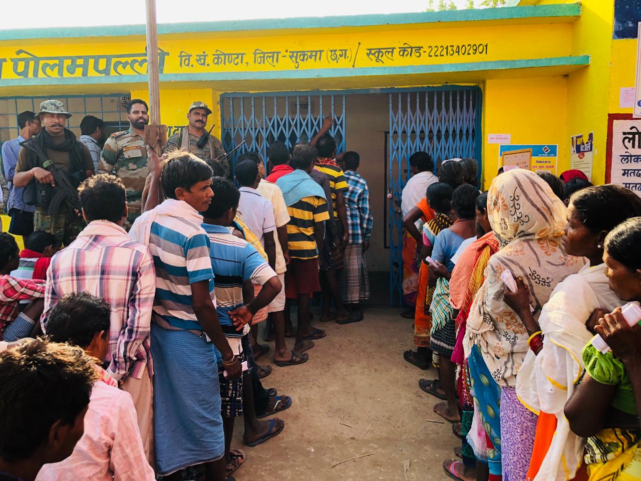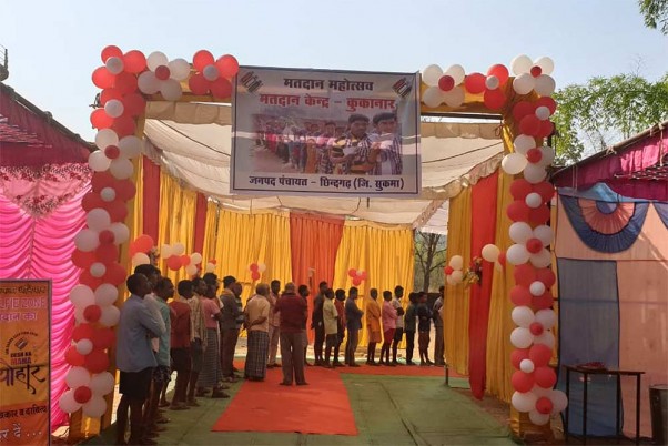 - छत्तीसगढ़ के सुकमा जिले में ऐसे सजा कुकनार मतदान केंद्र।