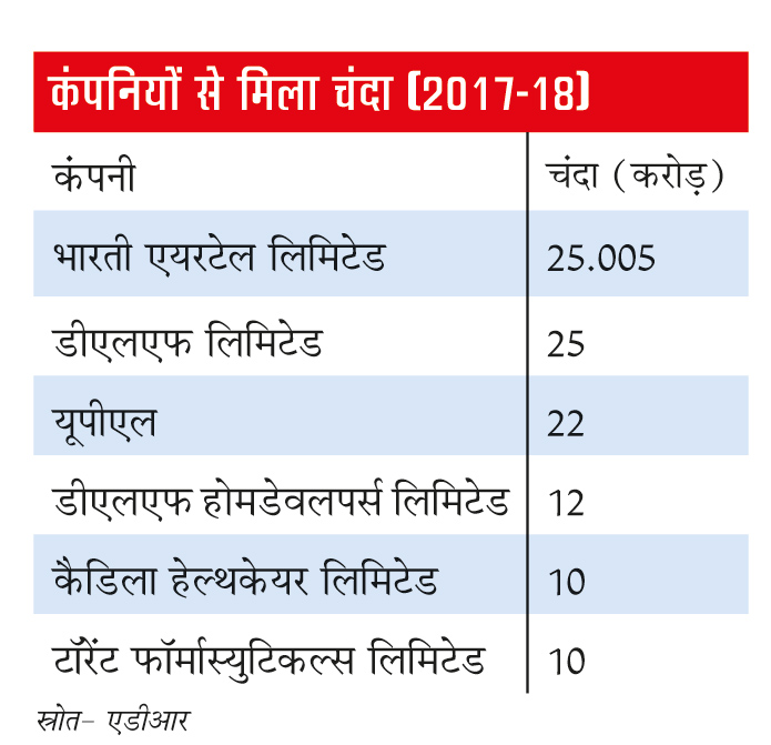 राजनीतिक दलों को 2017-18 में इलेक्टोरल ट्रस्ट से जो चंदा मिला है, उसमें से 86.59 फीसदी राशि यानी 167.80 करोड़ रुपये भारतीय जनता पार्टी को मिले हैं। जबकि भारतीय राष्ट्रीय कांग्रेस, बीजू जनता दल, राष्ट्रवादी कांग्रेस पार्टी और नेशनल कांफ्रेंस को कुल मिलाकर 25.98 करोड़ रुपये मिले।