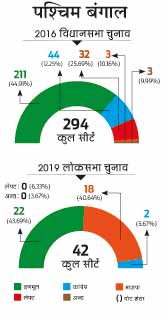 केंद्रीय गृह मंत्री अमित शाह और भाजपा भी इस इलाके में सबसे ज्यादा जोर लगा रही है क्योंकि इसी इलाके और उत्तर बंगाल से उसे लोकसभा में सर्वाधिक सीटें मिली थीं। इन्हीं इलाकों के खासकर आदिवासी, अनुसूचित जाति (तपसीली और मतुआ समुदाय) वगैरह में उसकी पैठ बढ़ी है और वाम तथा कांग्रेस समर्थकों के पाला बदल से उसका वोट प्रतिशत 2016 के विधानसभा चुनावों में करीब 10 फीसदी से बढ़कर 2019 के लोकसभा चुनावों में 40 फीसदी पर पहुंच गया था। हालांकि अमित शाह की झाड़ग्राम और बांकुड़ा की सभाओं में आई कम भीड़ को यह संकेत माना जा रहा है कि संसदीय चुनावों से इस बार रुझान कुछ अलग है।
