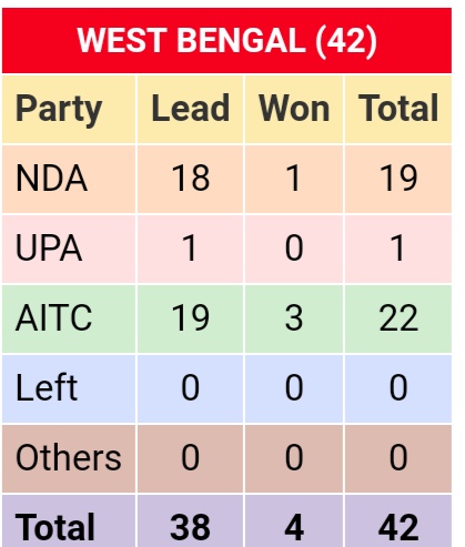 4 बजे- पश्चिम बंगाल में एनडीए 18 सीटों पर, एआईटीसी 19 सीटों पर आगे