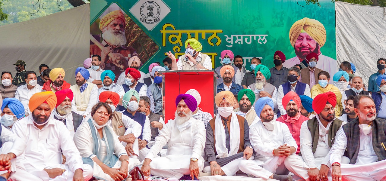 केंद्रीय कृषि विधेयकों के विरोध में बुधवार को दिल्ली के जंतर मंतर पर पंजाब के सांसदों,मंत्रियों व विधेयकों ने मुख्यमंत्री कैप्टन अमरिदंर सिंह की अगुवाई में धरना दिया। राज्य के कृषि विधेयकों को मंजूरी के लिए मुख्यमंत्री कैप्टन अमरिंदर सिंह, उनके मंत्रियों, कांग्रेस सांसदों और विधायकों को 4 नवम्बर को राष्ट्रपति से मिलना था पर एन मौके पर राष्ट्रपति द्वारा समय न दिए जाने से धरना देकर अपनी नाराजगी जाहिर की। इससे पहले राजघाट जाकर कैप्टन अमरिंदर ने महात्मा गांधी को श्रद्वाजंलि दी। वहां धारा 144 लगाए जाने से कैप्टन के साथ कांग्रेस के सिर्फ चार सांसद ही जा पाए। धरने का संबोधित करते हुए कैप्टन अमरिंदर ने कहा कि देश की सरहदों पर देश की रक्षा के निए खून बहाने वाले पंजाबी कोई खून खराबा नहीं चाहते वे सिर्फ किसानों के हकों की लड़ाई के लिए दिल्ली में राष्ट्रपति से मिलने के लिए आए थे पर उन्हें मिलने का समय नहीं दिया गया।