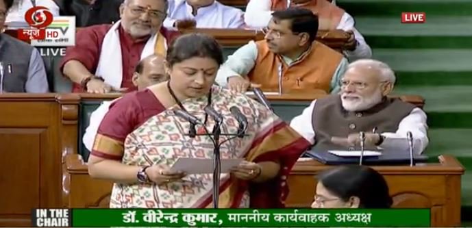केंद्रीय मंत्री स्मृति ईरानी ने 17वीं लोकसभा के सदस्य के तौर पर शपथ ली।