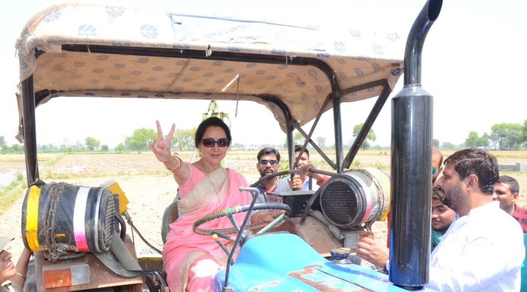 इन दिनों राजनीतिक पार्टियां लोकसभा चुनाव की तैयारियों को अंतिम रूप देने में लगी हुई हैं। ऐसे में चुनाव के प्रचार अभियान में जुटे उम्मीदवार अपने मतदाताओं को खुश करने की तमाम कोशिशों में जुटे हुए हैं। इस रेस में उत्तर प्रदेश की मथुरा लोकसभा सीट से भारतीय जनता पार्टी (भाजपा) उम्मीदवार और बॉलीवुड ऐक्ट्रेस हेमा मालिनी भी हैं, जो अपने वोटरों को लुभाने का एक भी मौके नहीं छोड़ना चाहती। हेमा मालिनी की पहले फसल काटने की तस्वीरें सोशल मीडिया पर वायरल हुई थीं। अब बॉलीवुड की ड्रीम गर्ल अपने संसदीय क्षेत्र में ट्रैक्टर चलाते नजर आई हैं।