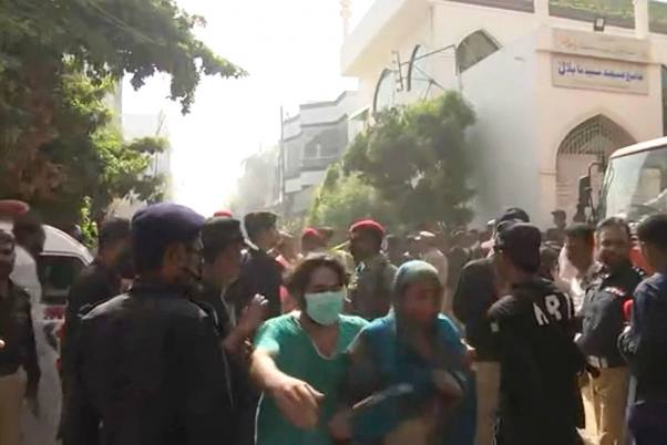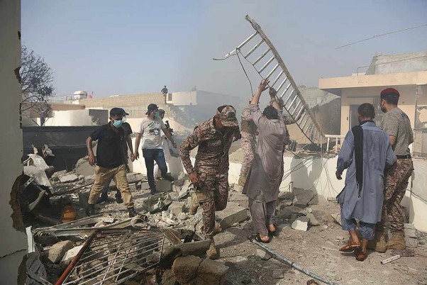 कराची में विमान क्रैश होने के बाद जुटी भीड़