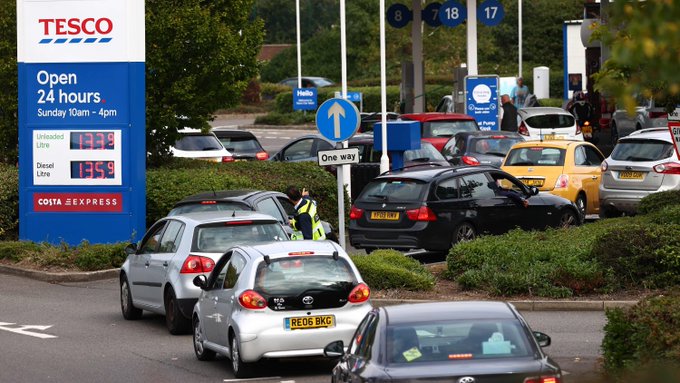 ब्रिटेन में इन दिनों लोगों को तेल संकट का सामना करना पड़ रहा है। पेट्रोल पंप पर तेल के इंतजार में लंबी-लंबी लाइनें लगी है। हमेशा भागती दौड़ती रहने वाली ब्रिटेन की अर्थव्यवस्था के पहिए थम से गए हैं और इसकी वजह यहां तेल संकट की स्थिति बनी हुई है। ब्रिटेन के तमाम बड़े शहरों में लोग रोज से घरों से तेल की तलाश में निकल रहे है और गाड़ी में बिना तेल भरवाए ही वापस आ रहे हैं।