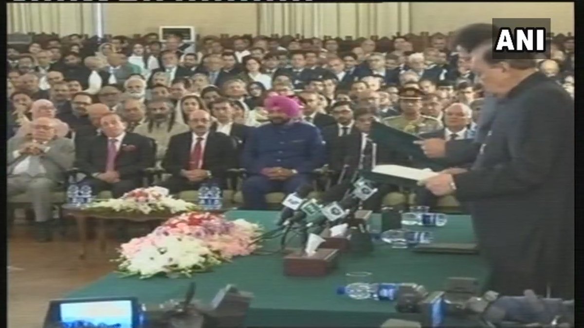 काले रंग की शेरवानी में तहरीक-ए-इंसाफ के पार्टी प्रमुख ने उर्दू में शपथ ली। इमरान के शपथ ग्रहण में कांग्रेस नेता और पूर्व क्रिकेटर नवजोत सिंह सिद्धू के साथ कई पूर्व और मौजूदा पाकिस्तानी खिलाड़ी भी शामिल हुए। इस्लामाबाद में पूर्व पाक कप्तान ने सादे समारोह में शपथ ग्रहण किया।
